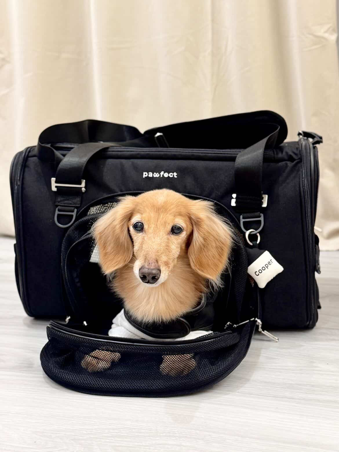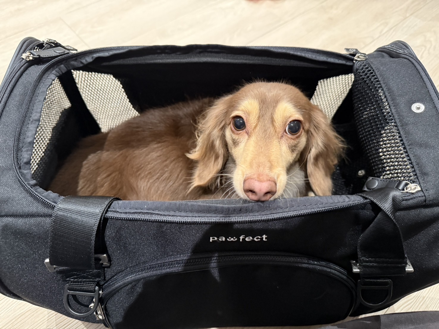 包包很穩,空間比想像中大很多,帶狗去咖啡廳或旅行都很方便,而且外型很有質感。